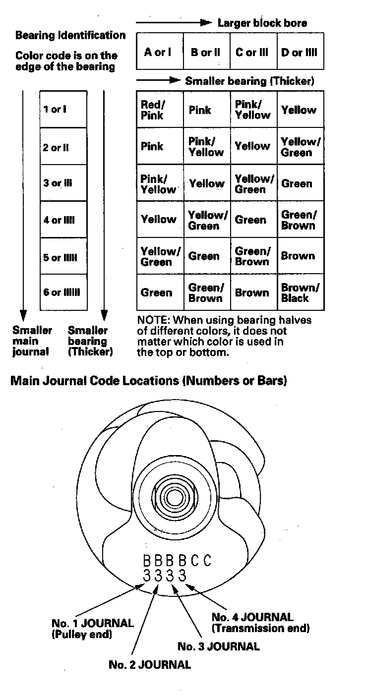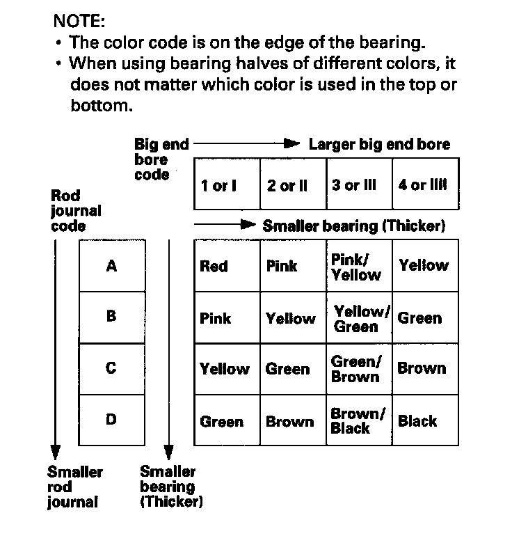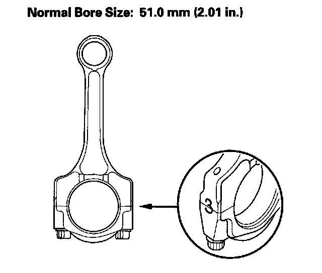 Each connecting rod has a tolerance range from 0 to 0.024 mm (0.0009 in.), in 0.006 mm (0.0002 in.) increments, depending on the size of its big end bore. It's then stamped with a number or bar (1, 2, 3, or 4/I, II, III, or IIII) indicating the range