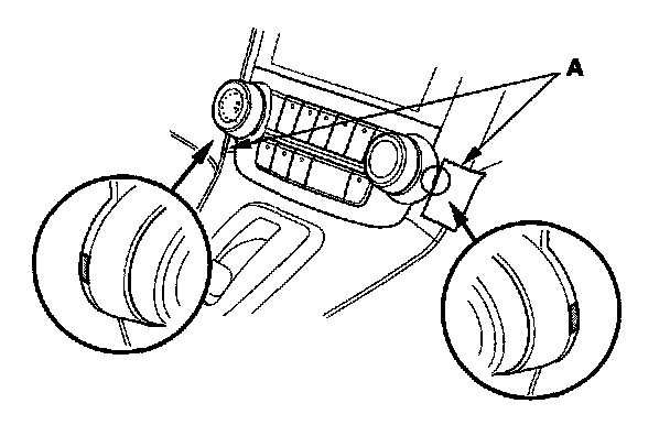 2. Place protective tape (A) on both sides of the dashboard next to the HVAC control unit.