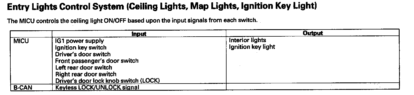 Entry Lights Control System (Ceiling Lights, Map Lights, Ignition Key Light)