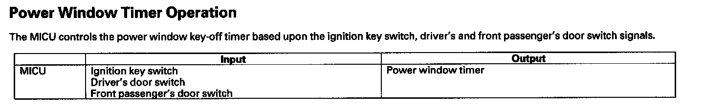 Power Window Timer Operation