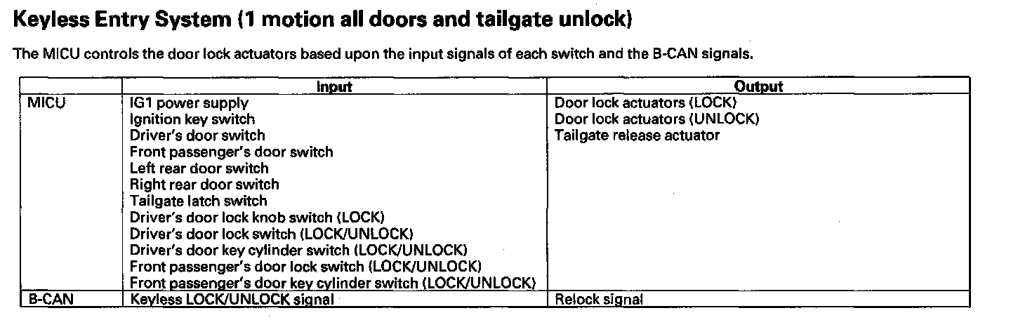 Keyless Entry System (1 motion all doors and tailgate unlock)