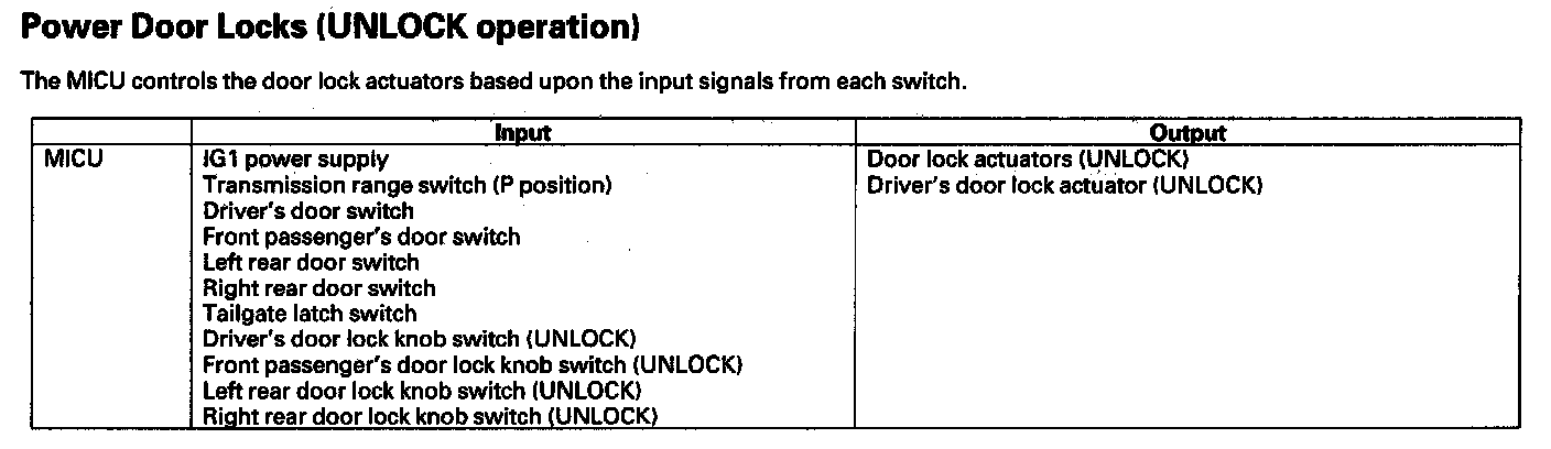 Power Door Locks (UNLOCK operation)