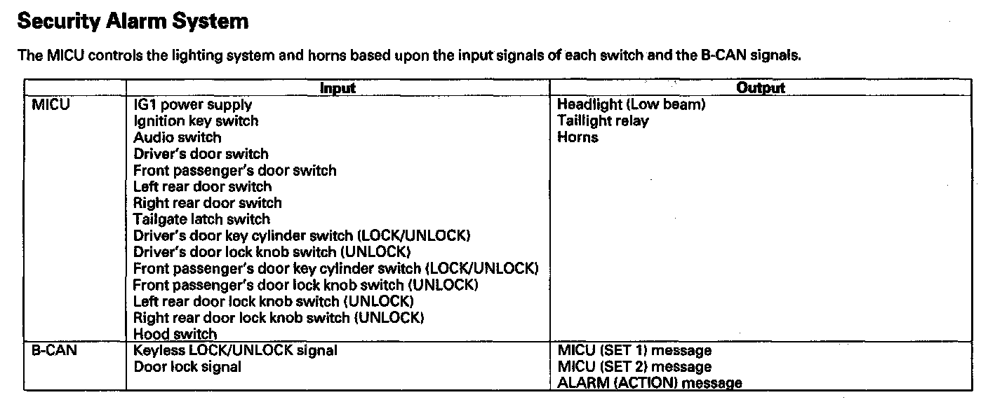 The MICU (built into the under-dash fuse/relay box) is one of the B-CAN components. The MICU controls many systems related to the body controller area network, and also works as a gateway to diagnose the other B-CAN circuits with the HDS.