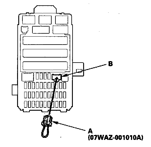 4. Connect the MPCS service connector (A) to the MCIC socket (B) in the under-dash fuse/relay box.