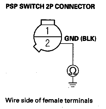 13. Check for continuity between PSP switch 2P connector terminal No. 1 and body ground.
