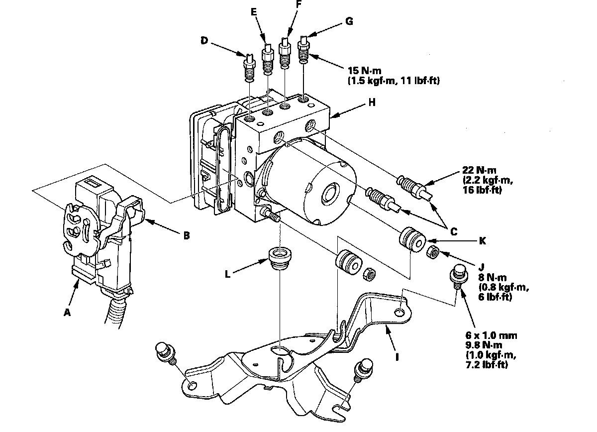 5. Remove the locknuts (J) then remove the VSA modulator-control unit from the bracket.
