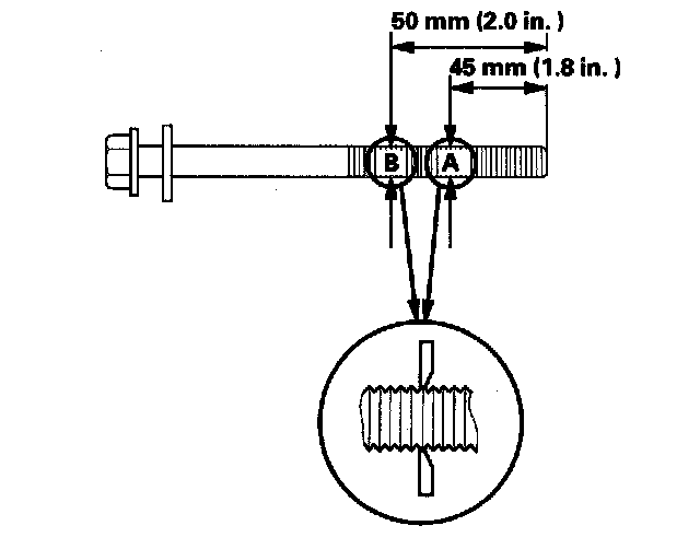 Measure the diameter of each cylinder head bolt at point A and point B.