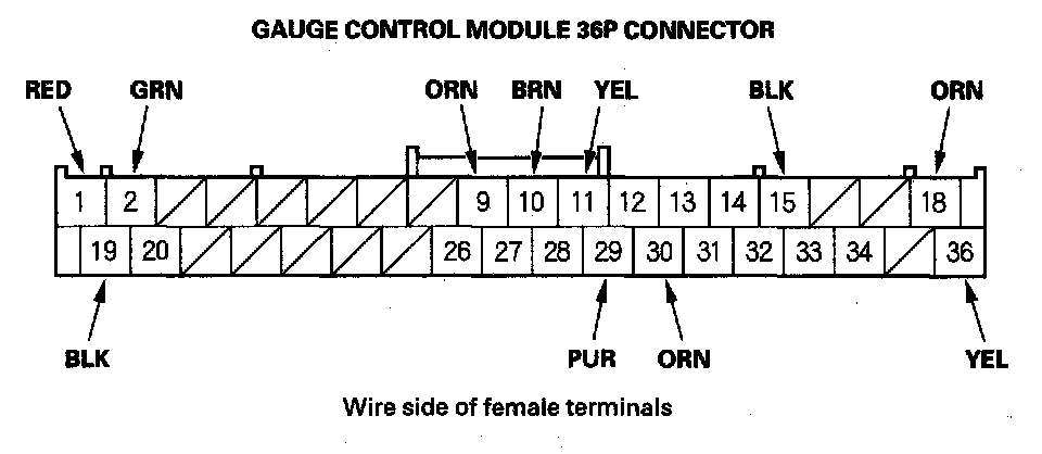 2. Remove the gauge control module, and disconnect the 36P connector from it.