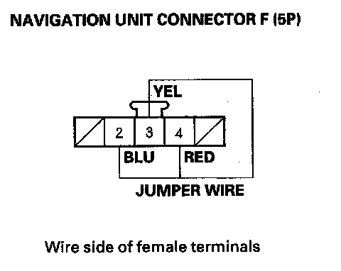 10. Connect navigation unit connector F (5P) No. 2, 3, and 4 terminals with a jumper wire.