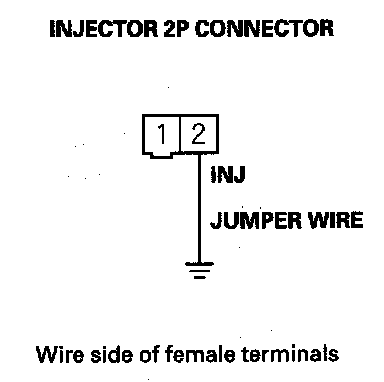 5. Connect each injector 2P connector terminal No. 2 to body ground with a jumper wire.