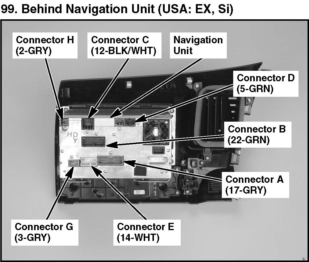 99. Behind Navigation Unit (USA: EX, Si):