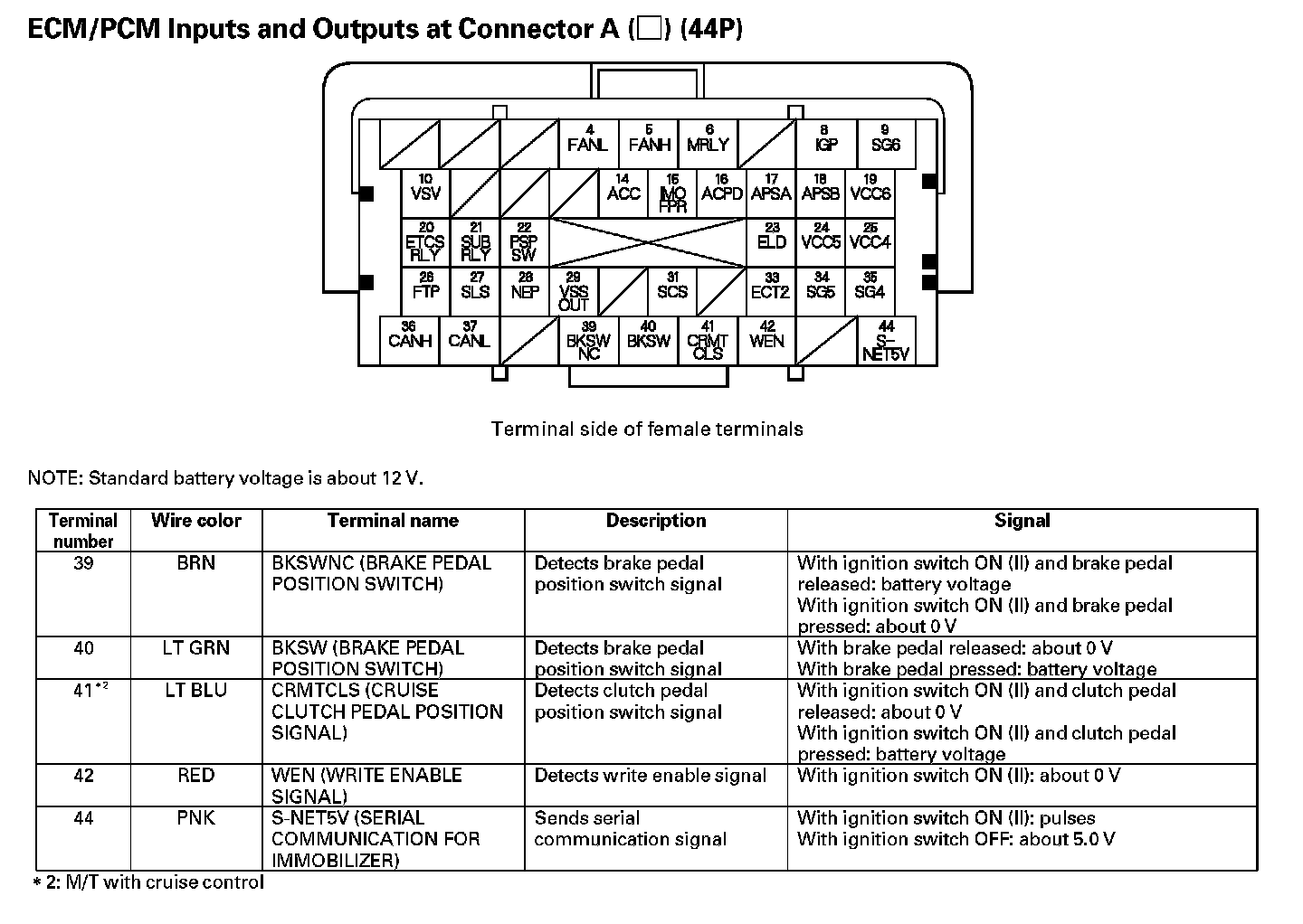 ECM/PCM Inputs And Outputs At Connector A (44P) (Part 1):