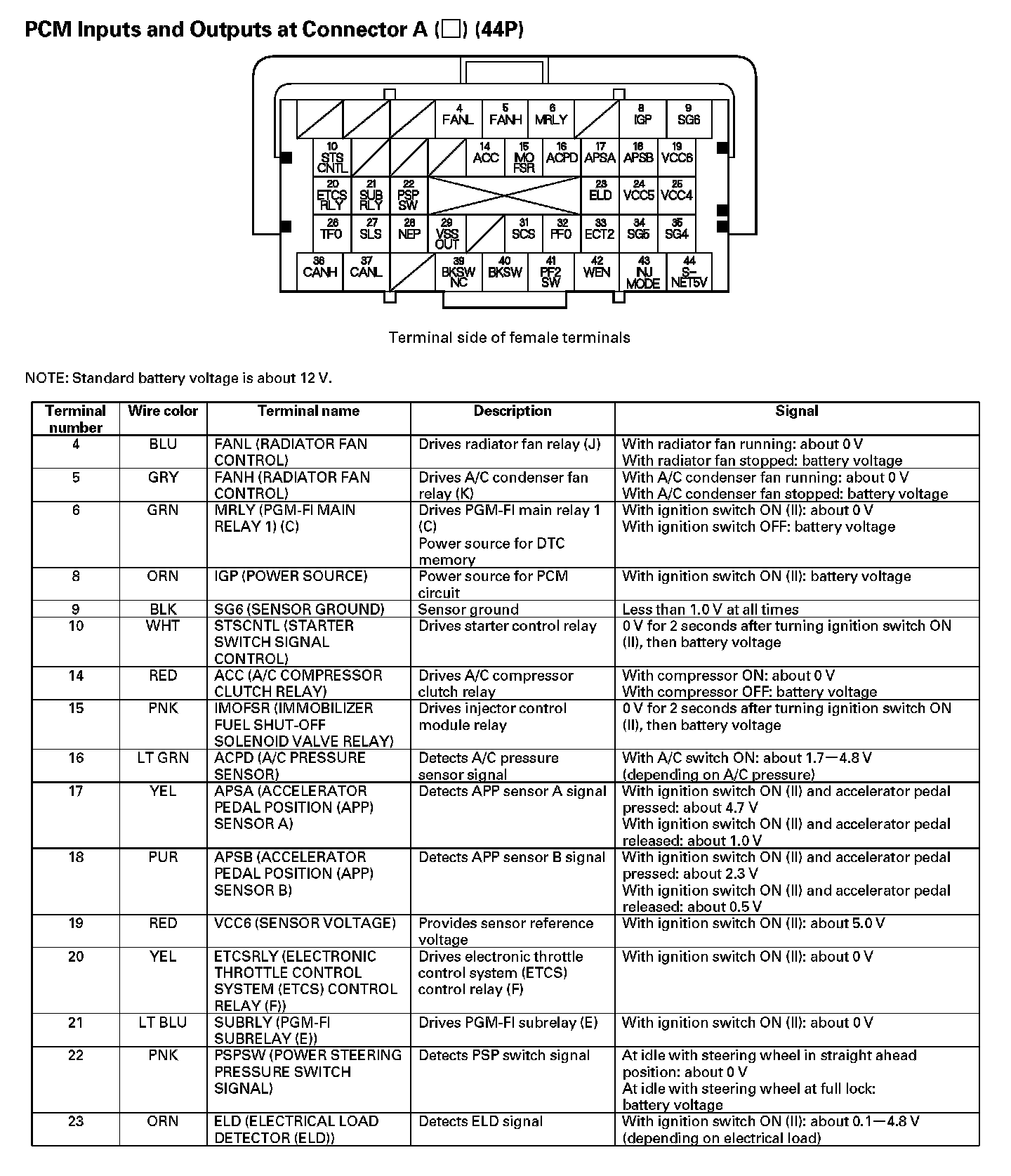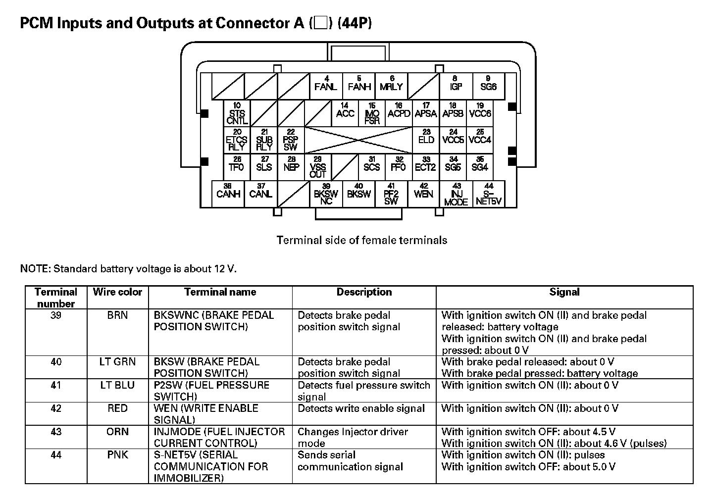 PCM Inputs And Outputs At Connector A (44P) (Part 2):
