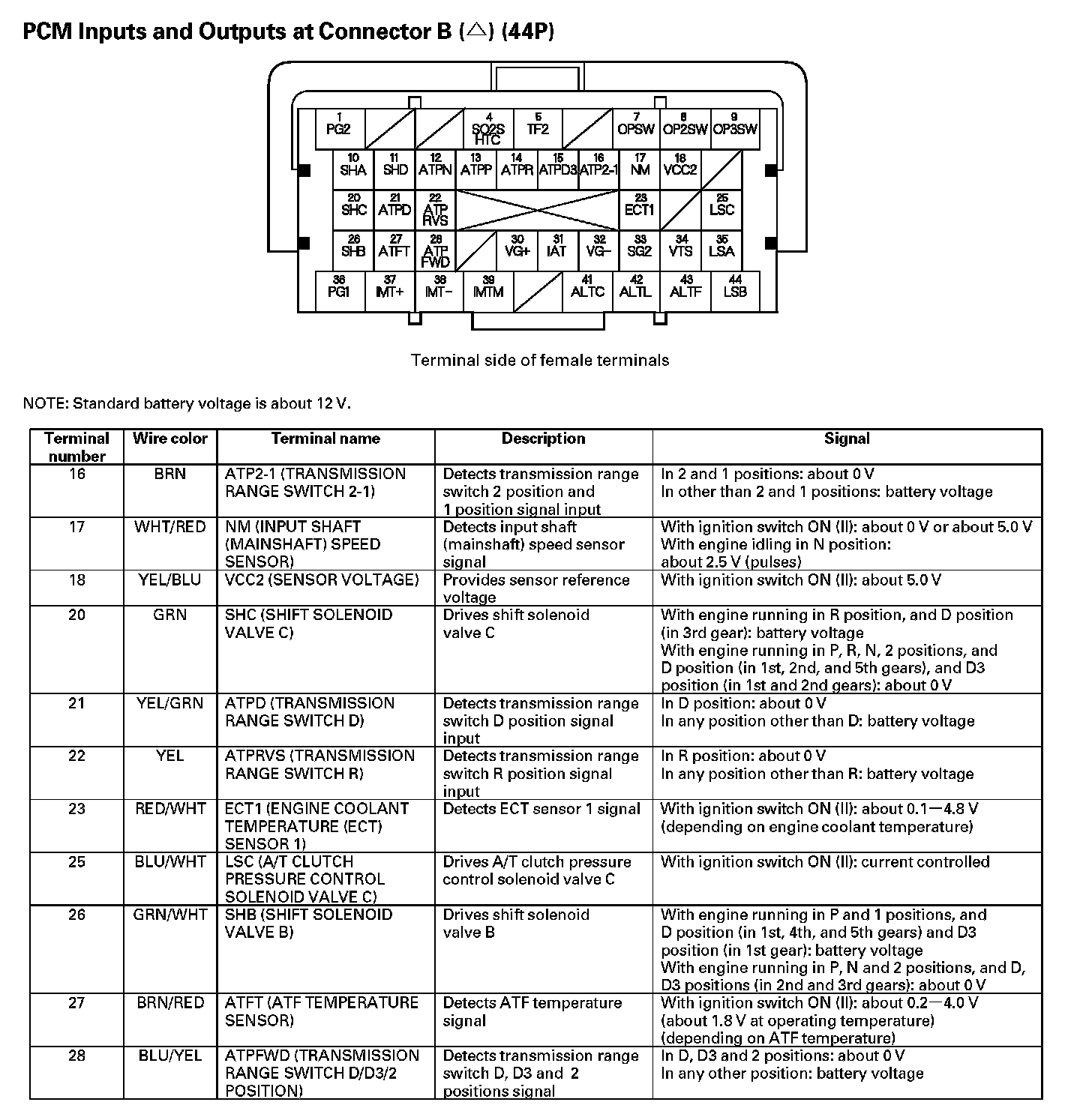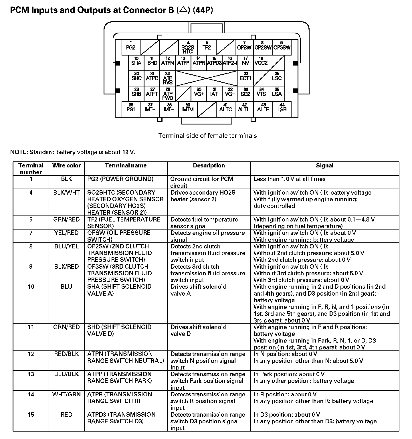 PCM Inputs And Outputs At Connector B (44P) (Part 1):