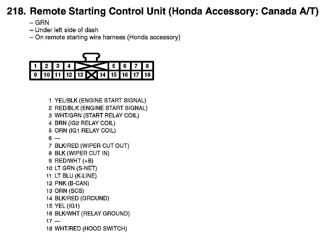218. Remote Starting Control Unit (Honda Accessory: Canada A/T):
