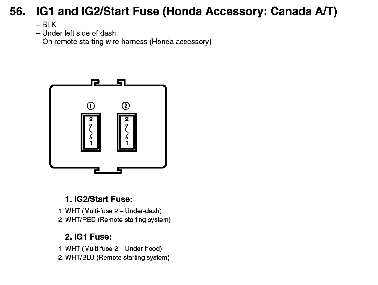 56. IG1 And IG2/Start Fuse (Honda Accessory: Canada A/T):