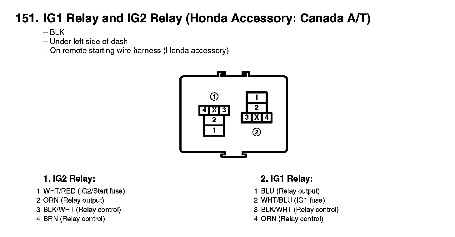 151. IG1 Relay And IG2 Relay (Honda Accessory: Canada A/T):