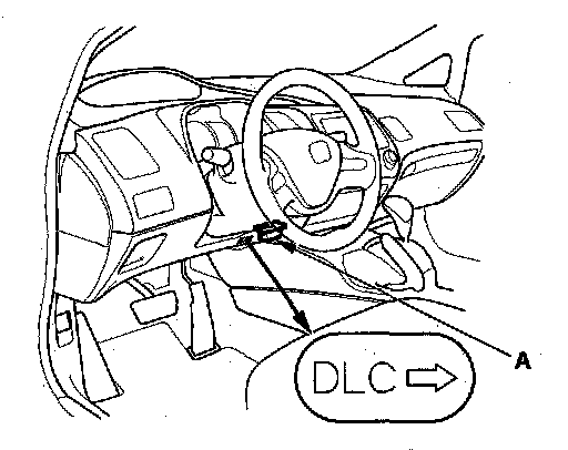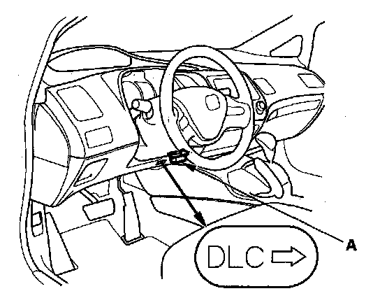 2. Connect the HDS to the data link connector (DLC) (A) located under the driver's side of the dashboard.