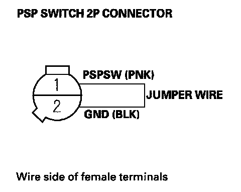 19. Remove the jumper wire from the PSP switch 2P connector.