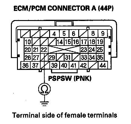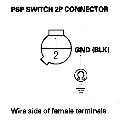 24. Check for continuity between PSP switch 2P connector terminal No. 2 and body ground.