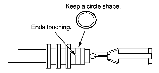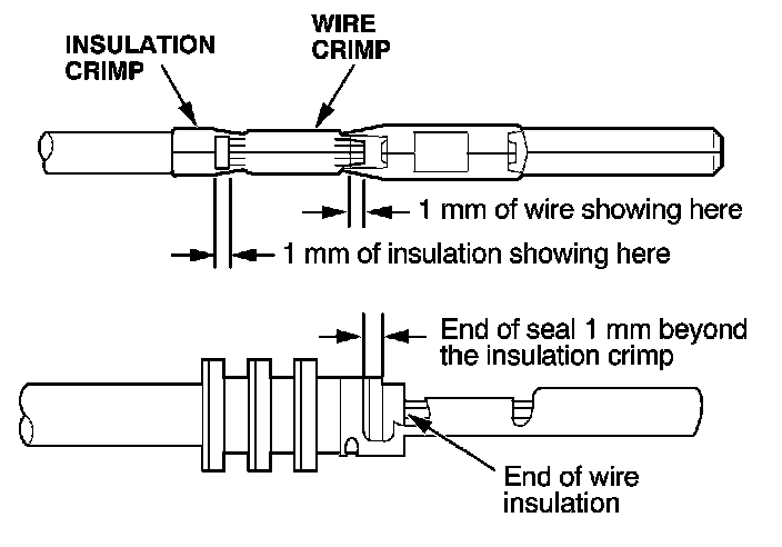 3. Strip the insulation off the end of the wire so the wire fits in the new terminal as shown. (If the wire has a wire seal, replace it with a new one from the kit.)