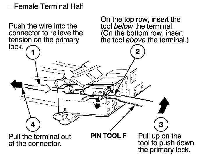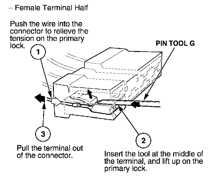 Home >> Honda >> 2008 >> Civic L4-1.8L >> Repair and Diagnosis >> Powertrain Management >> Relays and Modules - Powertrain Management >> Relays and Modules - Computers and Control Systems >> Engine Control Module >> Diagrams >> Diagnostic Aids >> Terminal Replacement Procedures >> How to Replace Connector Terminals