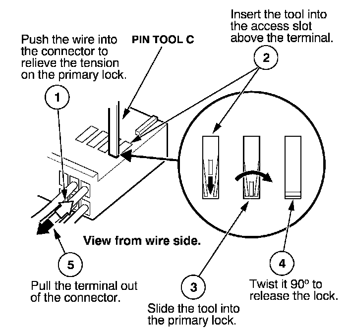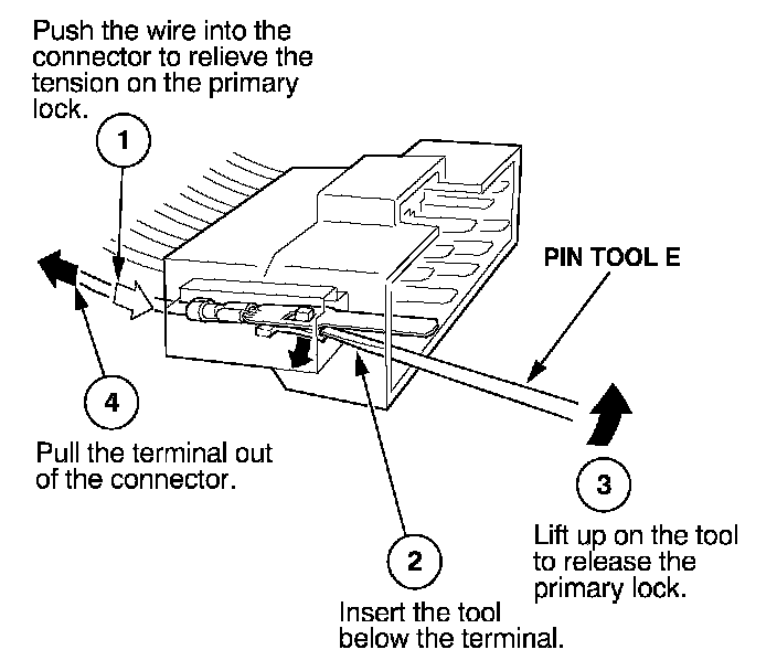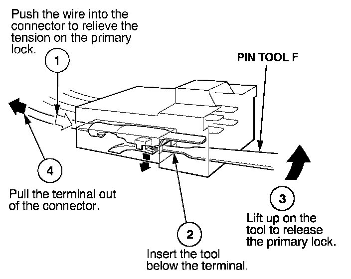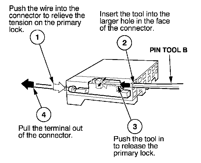 Before you begin, inspect the wire you are about to repair for damage and length. Make sure the wire will be long enough to make a terminal repair without stretching it when you reinstall the terminal in the connector. If the wire is too short, or if access to the connector is too restricted to make a terminal repair, you may need to install a pigtail terminal (a short length of wire with a factory-crimped terminal on it). Refer to HOW TO INSTALL PIGTAIL TERMINALS.