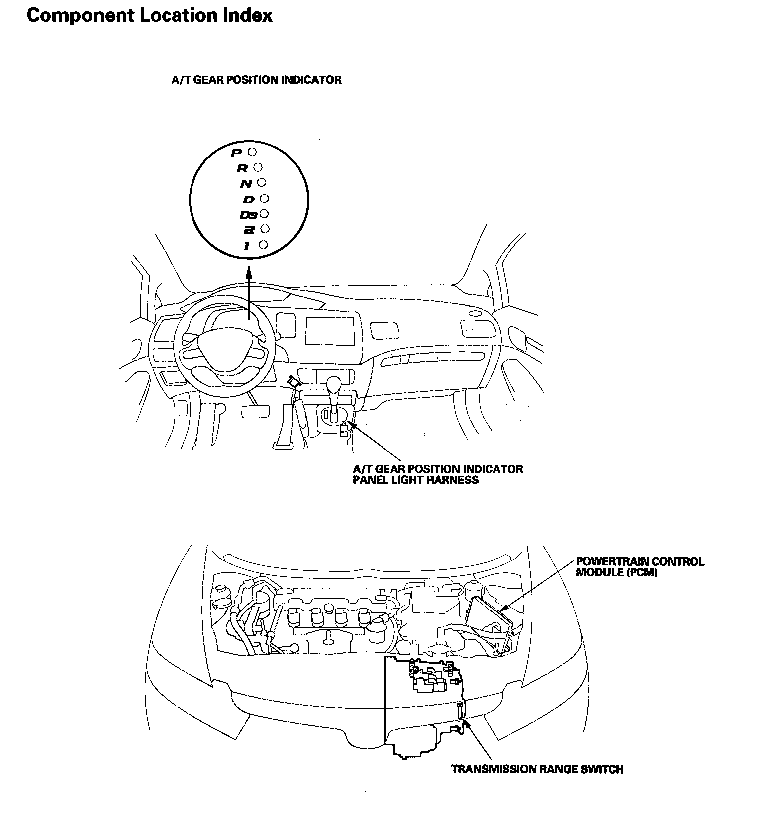 A/T Gear Position Indicator Component Location Index: