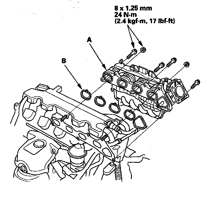 Torque the 8mm bolts in sequence to 24 Nm (2.4 kgf-m, 17 lbf-ft)