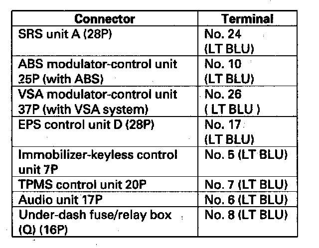 - TPMS control unit 20P connector (with TPMS)