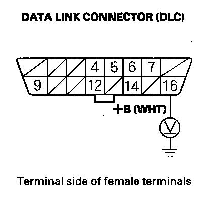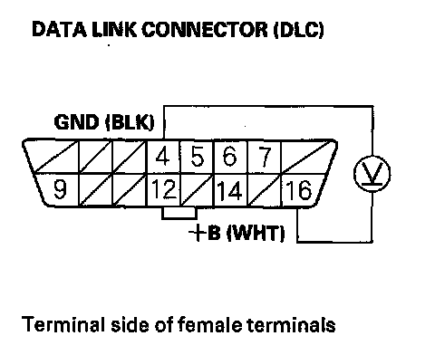 30. Measure voltage between DLC terminals No. 4 and No. 16.