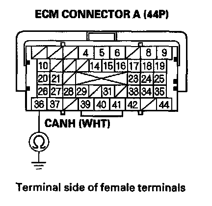 36. Check for continuity between ECM connector terminal A36 and body ground.