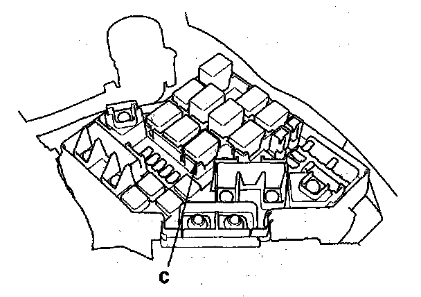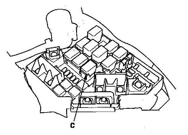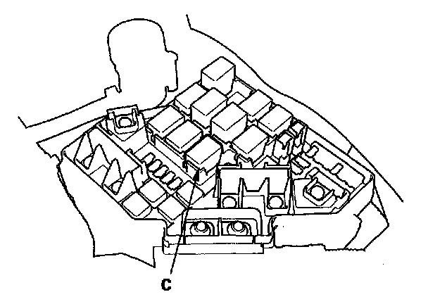 68. Remove PGM-FI main relay 1 (C) from the under-hood fuse/relay box.