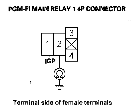 73. Measure voltage between PGM-FI main relay 1 4P connector terminal No. 1 and body ground.