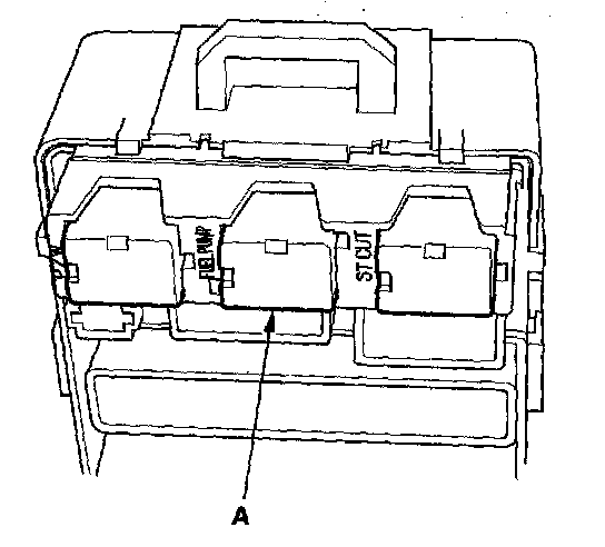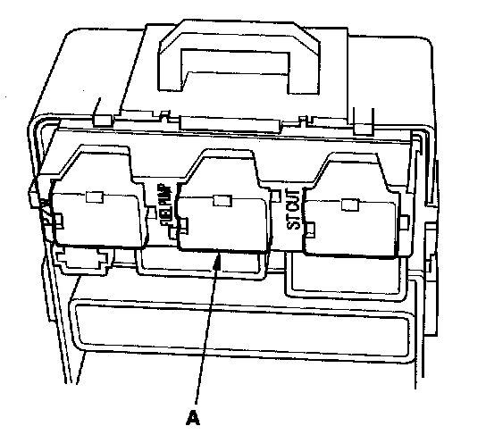 54. Remove PGM-FI main relay 2 (FUEL PUMP) (A) from the under-dash fuse/relay box.