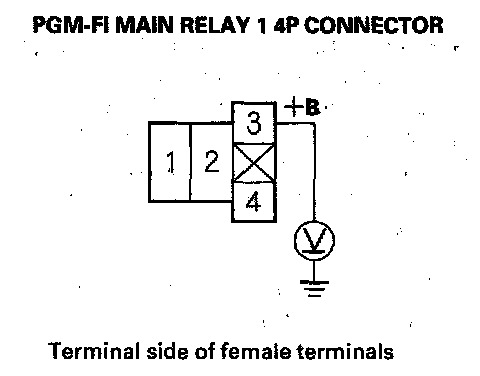 69. Measure voltage between PGM-FI main relay 1 4P connector terminal No. 3 and body ground.