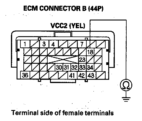 80. Check for continuity between ECM connector terminal B18 and body ground.