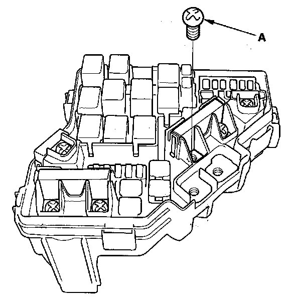 5. Turn the housing over again. Using two flat-tip screwdrivers, release the tabs (A), and pry up the fuse/relay box base (B) from the fuse/relay box housing (C).