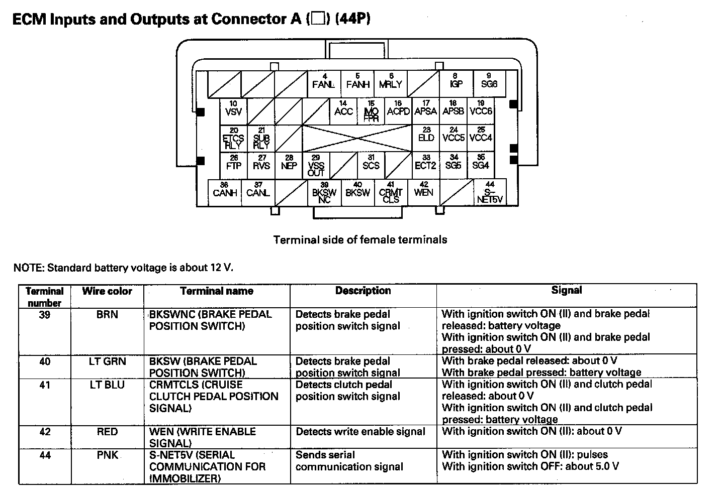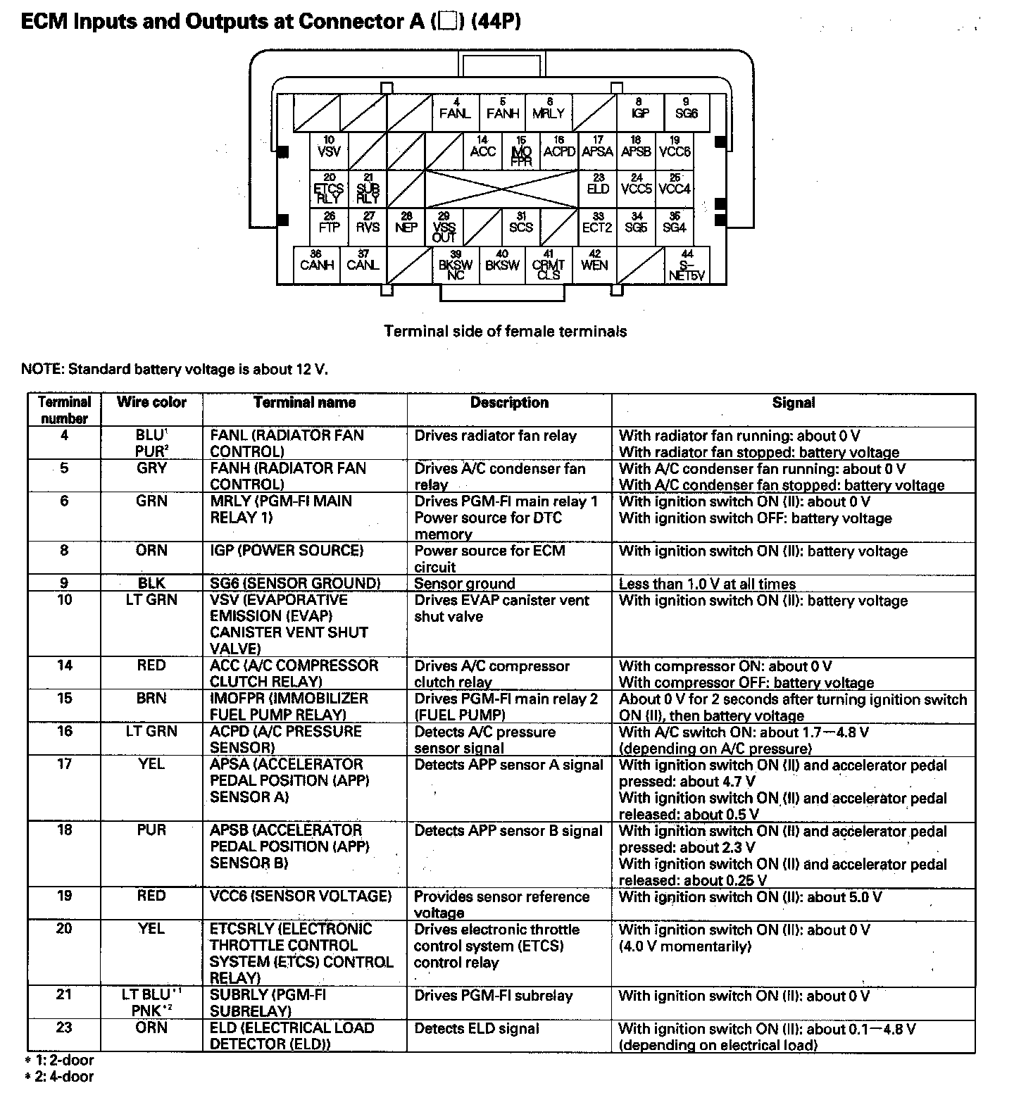 ECM Inputs And Outputs At Connector A (44P) (Part 1):