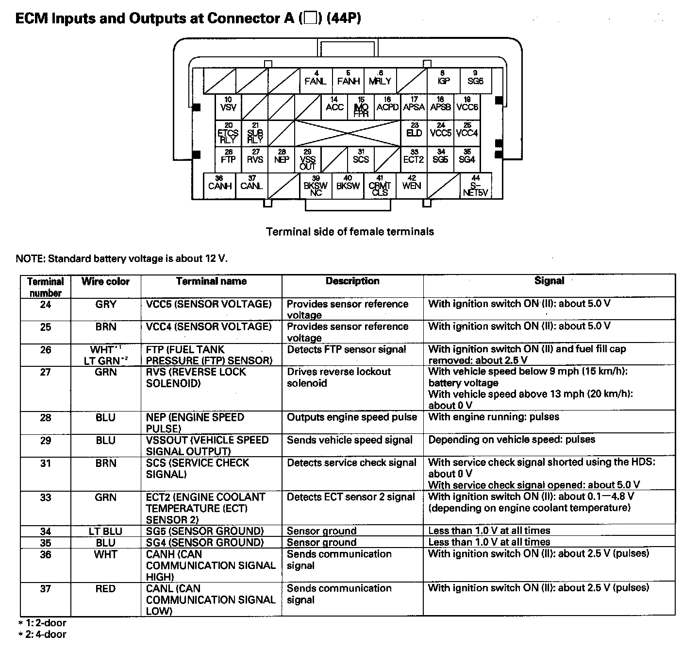 ECM Inputs And Outputs At Connector A (44P) (Part 2):