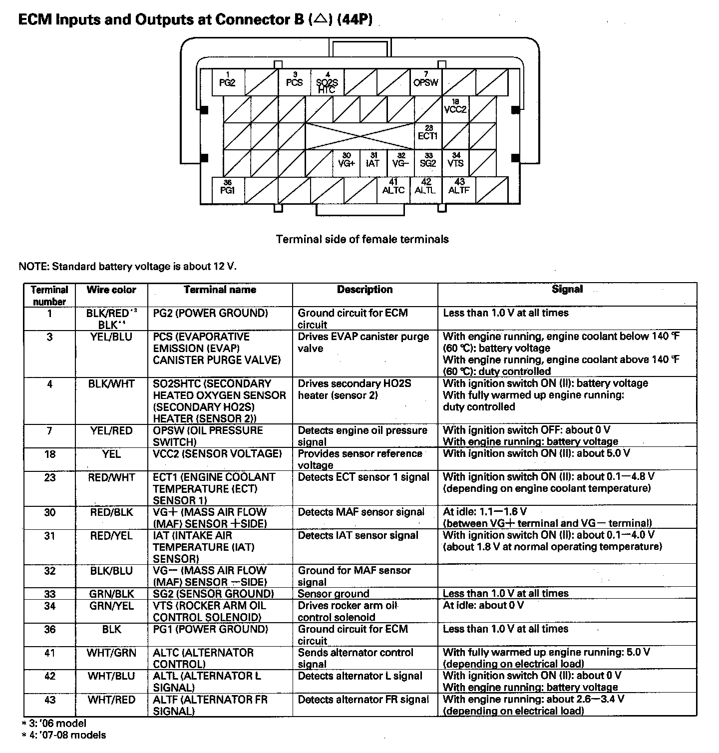 Home >> Honda >> 2008 >> Civic Si L4-2.0L >> Repair and Diagnosis >> Powertrain Management >> Computers and Control Systems >> Engine Control Module >> Testing and Inspection >> Pinout Values and Diagnostic Parameters