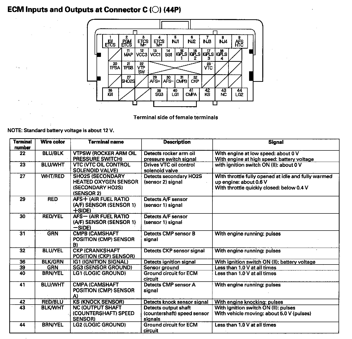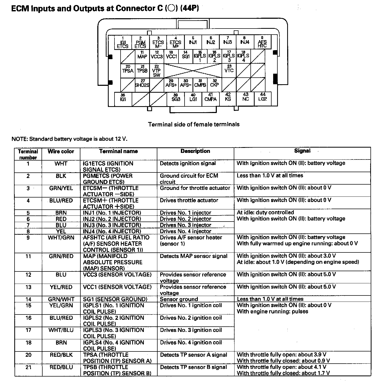 ECM Inputs And Outputs At Connector C (44P) (Part 1):