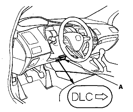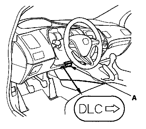 2. Connect the HDS to the data link connector (DLC) (A) located under the driver's side of the dashboard.