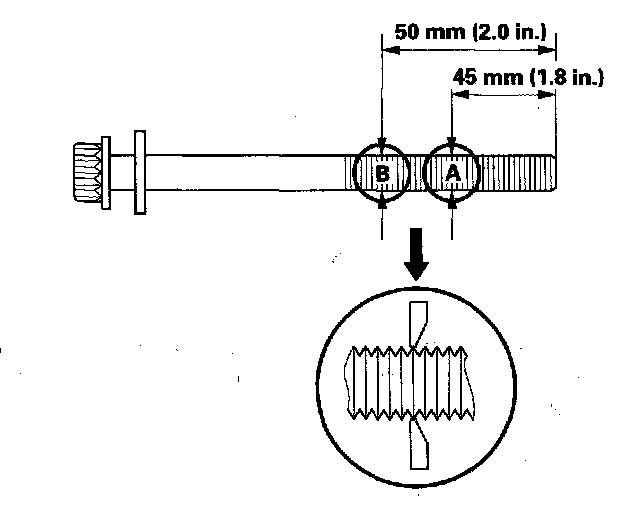 Cylinder HeadIf either diameter is less than 10.6 mm (0.42 in.), replace the cylinder head bolt.