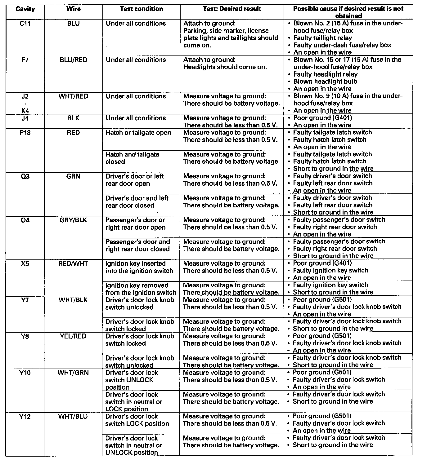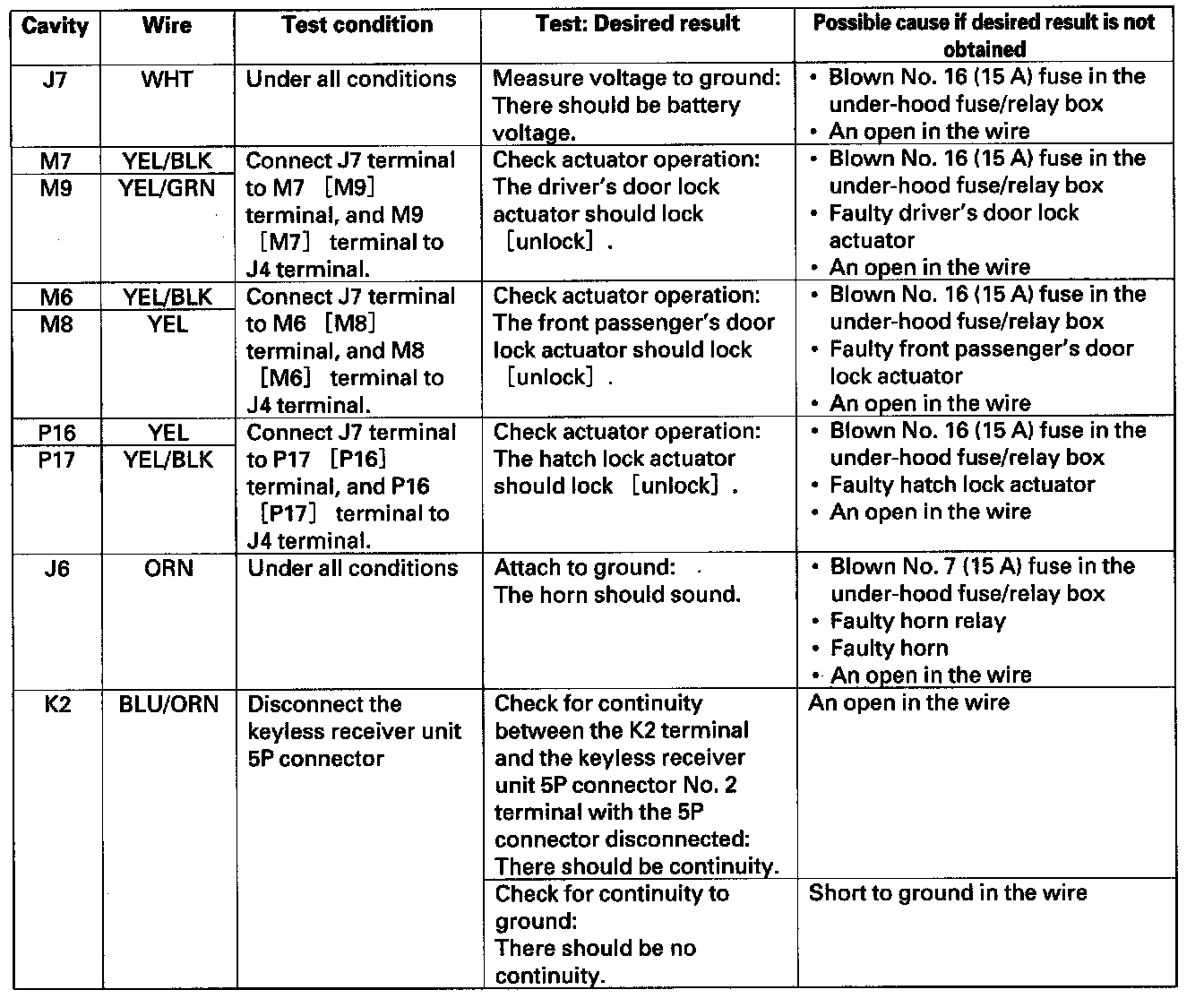 Home >> Honda >> 2008 >> Element 2WD L4-2.4L >> Repair and Diagnosis >> Body and Frame >> Locks >> Keyless Entry >> Testing and Inspection >> Control Unit Input Test