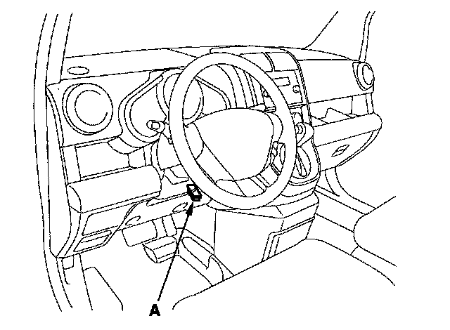 2. With the ignition switch OFF, connect the HDS to the data link connector (DLC) (A) under the driver's side of the dashboard.