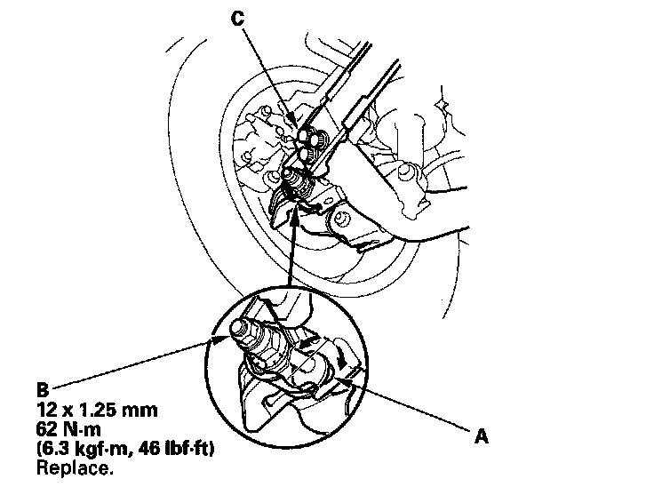 NOTICE: Do not loosen the special bolts (C) on the trailing arm.