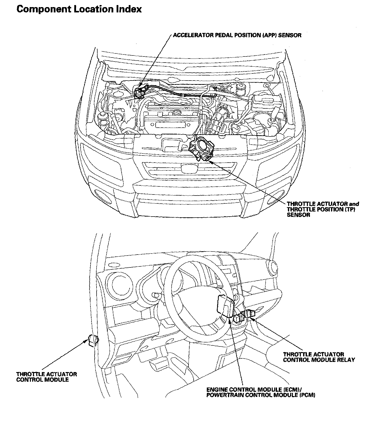 Electronic Throttle Control System Component Location Index: