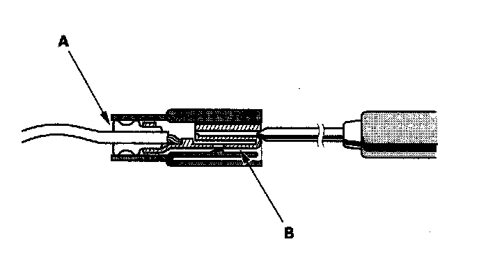 3. If you cannot get to the wire side of the connector or the wire side is sealed (A), disconnect the connector and probe the terminals (B) from the terminal side. Do not force the probe into the connector.