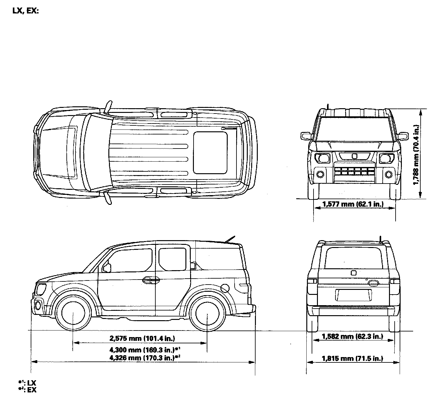 Body Specifications, LX & EX: